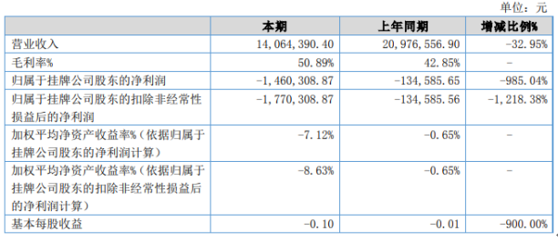 截止2020年6月30日,报告期末公司总资产为30,028,132.27元,较上年期末下滑13.59%;归属于挂牌公司股东的净资产为19,780,818.56元,较上年期末下滑6.87%。